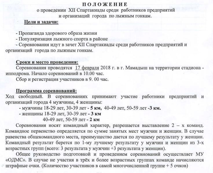 В Мамадыше состоится Спартакиада среди работников предприятий и организаций города по лыжным гонкам