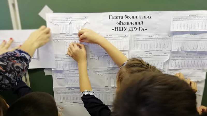 Итогом работы стал выпуск газеты бесплатных объявлений «Ищу друга», в которой ребята разместили свои объявления о поиске хорошего друга.