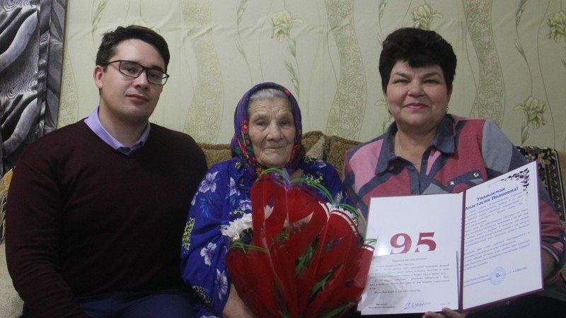 95-летие отмечает труженица тыла, жительница г.Мамадыш Анастасия Ивановна Коробова. С юбилеем ее поздравили заместитель руководителя Исполнительного комитета г.Мамадыш Раиль Дульмиев, начальник отдела социальной защиты Миннегуль Муллахметова. Гости вручили юбиляру поздравительные открытки от имени Президента РФ Владимира Путина, главы Мамадышского муниципального района Анатолия Иванова, а также подарки и цветы.