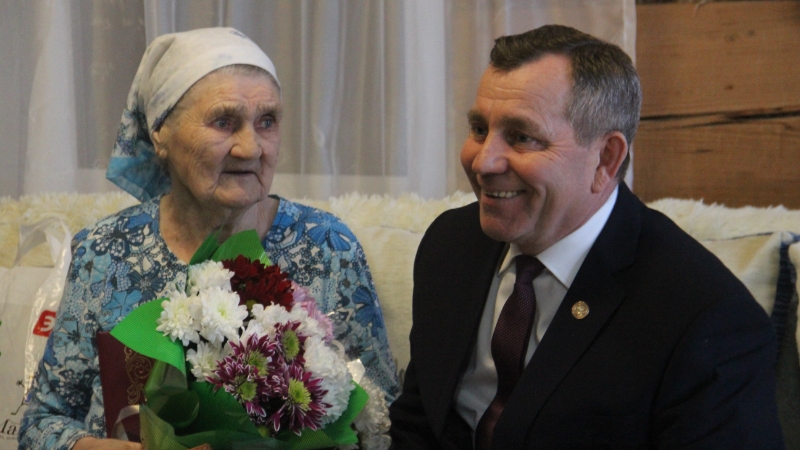 Cегодня юбилей отмечает ветеран ВОВ, жительница г.Мамадыш Резеда Гилязетдиновна Муллахметова. С 90-летием долгожительницу поздравил глава Мамадышского муниципального района Анатолий Иванов. «Ваш юбилей — очередное доказательство того, что 90 лет — вовсе не преклонный возраст. Низкий поклон вам за ту сложную жизнь, по которой Вы прошли достойно, будучи участником исторических событий, во время которого Вы трудились во благо будущего поколения. Желаю Вам крепкого здоровья, понимания близких, больше радости и удовольствий, которые Вы так заслужили» - высказал добрые пожелания глава района. Также Анатолий Петрович вручил почетный кремлевский конверт от имени Президента РФ Владимира Путина. К поздравлениям присоединились начальник отдела образования Ильдус Габдрахманов и председатель районной организации профсоюза работников образования Зуфар Саттаров. Они от всего сердца пожелали юбиляру крепкого здоровья на долгие годы жизни, благополучия, любви и заботы близких и родных.