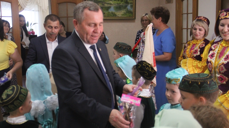 Любимейший праздник татарского народа Сабантуй —праздник труда, в котором сливаются воедино красивые обычаи народа, его песни, пляски, обряды. В старину празднование Сабантуя было большим событием, и к нему долго готовились. Сбор подарков является веселой традицией этого замечательного праздника. Сегодня воспитанники детского сада «Теремок» пришли в гости к сотрудникам Совета и Исполнительного комитета района. Дети и воспитатели дошкольного учреждения подготовили стихи, песни и танцы. После выступления ребята получили подарки из рук главы района Анатолия Иванова.