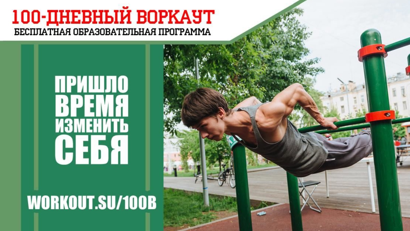 Прохождение программы индивидуально и начинается в момент установки мобильного приложения (http://workout.su/100iOS, workout.su/100Android) или записи на сайте проекта (http://workout.su/100IN).
