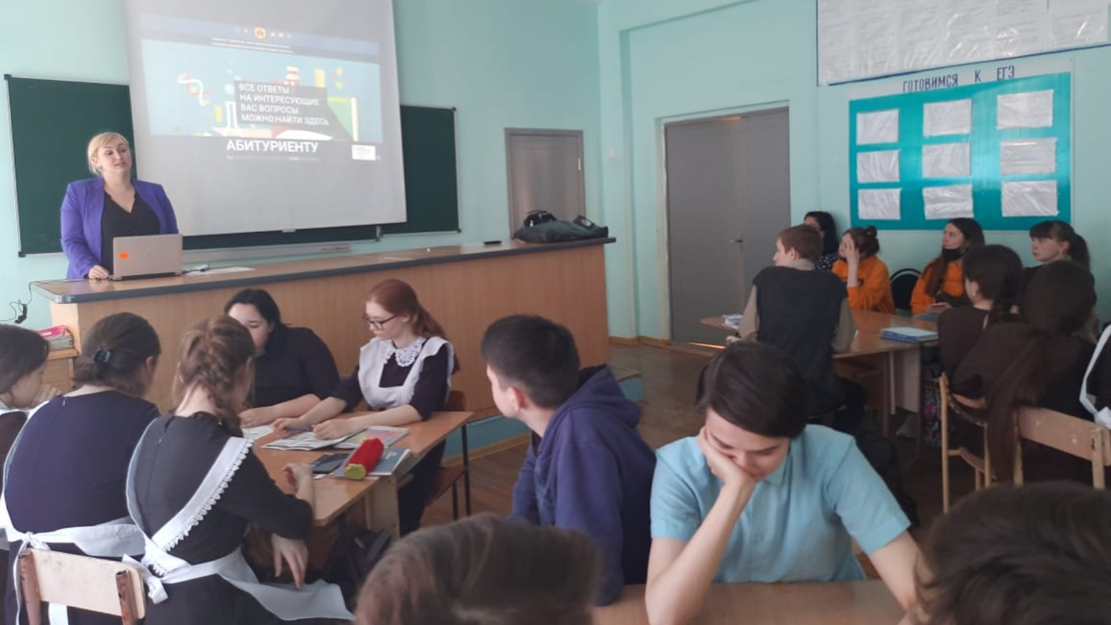 Преподаватели и студенты данного учебного заведения рассказали учащимся об университете, о студенческой жизни. Учащиеся с интересом слушали преподавателей, смотрели презентацию и видеоролики о вузе, задавали вопросы и получили на них исчерпывающие ответы.