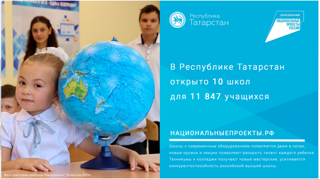 Об итогах реализации национальных проектов в Республике Татарстан с 2019 по 2022 год расскажем в карточках.