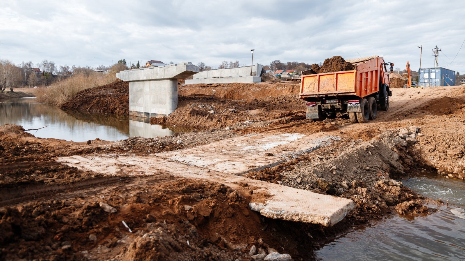 В Мамадыше продолжается строительство мостового перехода через реку Ошма. Он соединит улицы 18-ая годовщина Октября и Чапаева. Сегодня установлены три из четырех опор, в мае строители перейдут к монтажу пролетных строений - их более 20.