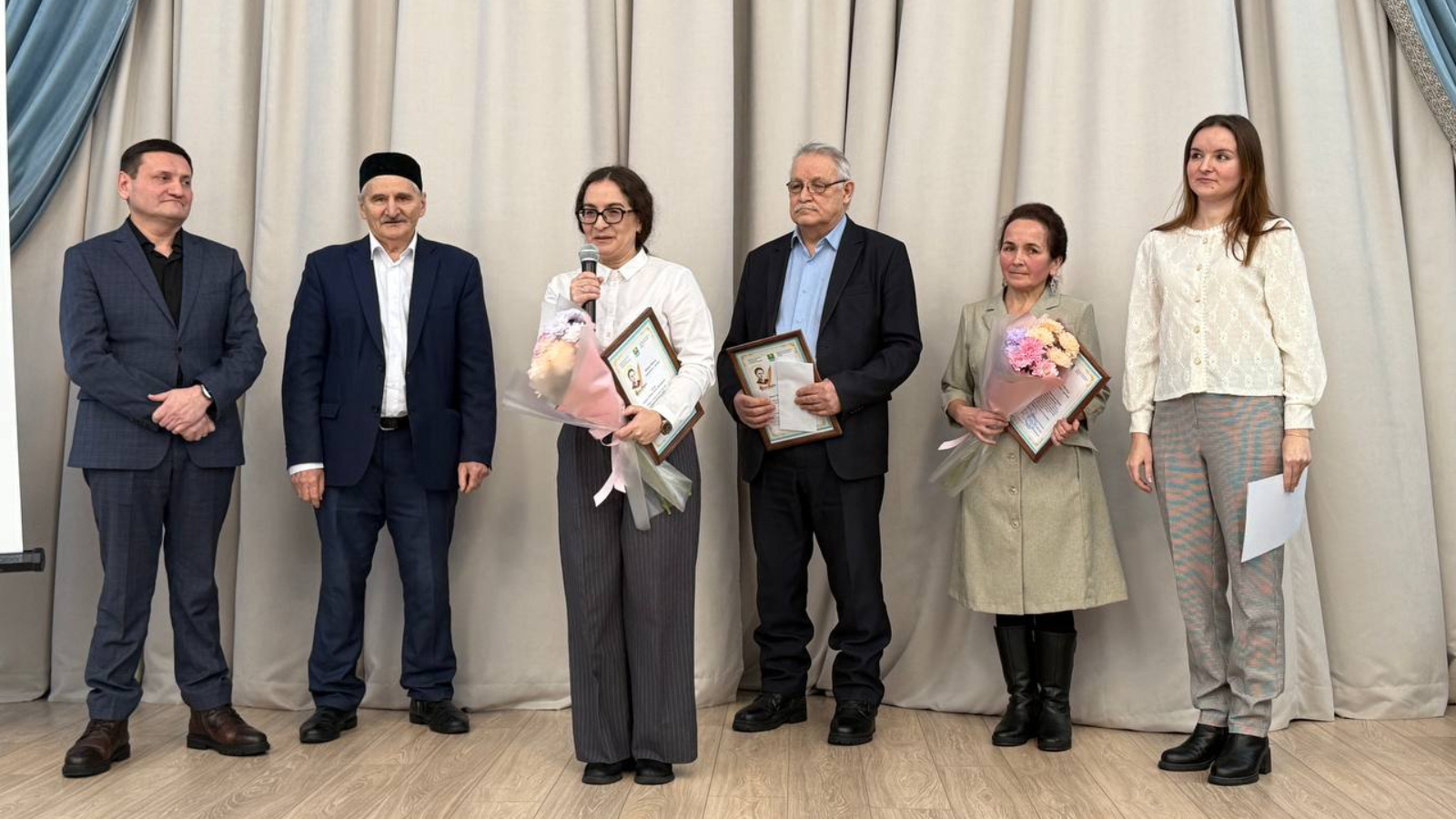 С приветственным словом к собравшимся обратился руководитель Исполнительного комитета Мамадышского муниципального района Артур Ефимов. Он принял участие в традиционном ежегодном вручении премии имени Шайхи Маннура. В этом году ее удостоены: писатель, журналист Фарит Файзетдинович Имамов, писатель, журналист, ответственный секретарь журнала «Казан утлары» Ландыш Робертовна Абударова, учитель татарского языка и литературы МБОУ «Усалинская СОШ» Зубарджат Габделхаковна Хайбуллина.