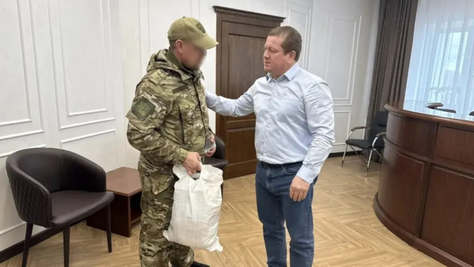Сегодня глава района Вадим Никитин встретился с участником специальной военной операции. Боец с позывным «Каток» приехал в краткосрочный отпуск.