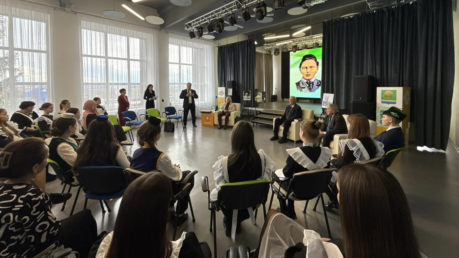 Встреча прошла в Молодёжном центре. Собрались школьники и учителя татарского языка. Пришёл и глава района Вадим Никитин.