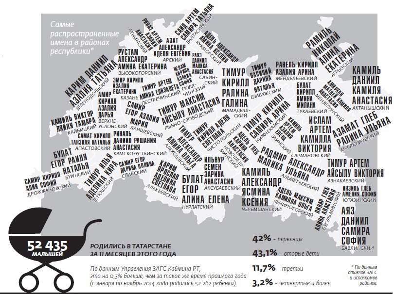 Выбор имени для ребенка - ответственное занятие. «События» решили составить «карту имен» исходя из того, какие из них пользуются наибольшей популярностью в районах Татарстана.