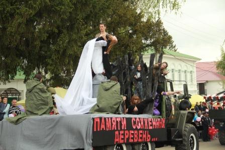Благодарственными письмами главы района за высокий уровень организации колонн были награждены более 20 коллективов. Среди экономических зон в этом году отличились Кирменская и Шадчинская. Первым за наградой вышел директор Политехнического колледжа Николай Егоров,чья команда, цитирую главу района: "Приятно всех удивила". Напомним, в этот раз колледж остановился на истории белорусской деревни Хатынь, уничтоженной 22 марта 1943 года карательным отрядом в качестве мести за убийство нескольких немецких военнослужащих.