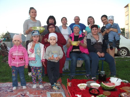 "Все, кто по определенным принчинам не смог поехать на всеми любимый праздник "Питрау", выщел в этот вечер во двор. Это и наши мудрое, старшее поколение,наши молодые мамы и их дети", - говорит главный идейный вдохновитель и организатор Гульгена Гайнанова. Она является старшей по дому Домолазова, 18.