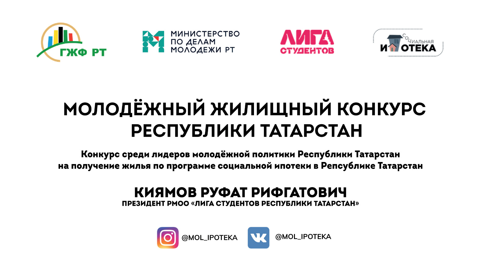 Яшьләр торак конкурсы – яшьләр өчен уникаль мөмкинлек-шул исәптән никахта булмаганнар өчен дә-социаль ипотека шартларында үз фатирларын сатып алу мөмкинлеге, квадрат метры өчен 60-70 мең сум ташламалы бәя һәм яңа фатирда яшәп, 28,5 елга кадәр кечкенә түләүләр белән ипотека түләү мөмкинлеге бар.