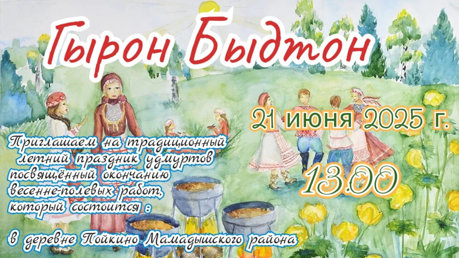 21 июньдә Мамадыш районы Пойкино авылында удмуртларның язгы кыр эшләре тәмамлануга багышланган традицион җәйге бәйрәме узачак.