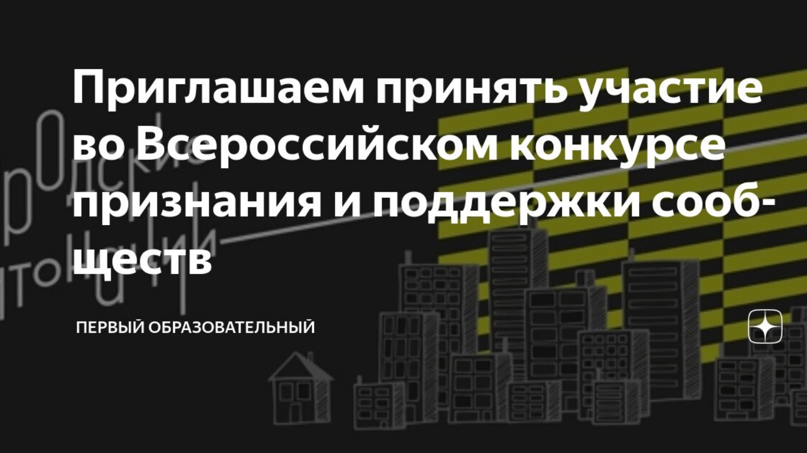Россиянең Төзелеш министрлыгы һәм «Городские реновации» гомумроссия оешмасы «Городские интонации»программасы кысаларында бергәлекләрне тану һәм аларга ярдәм итү буенча Бөтенроссия конкурсында катнашырга чакыра.