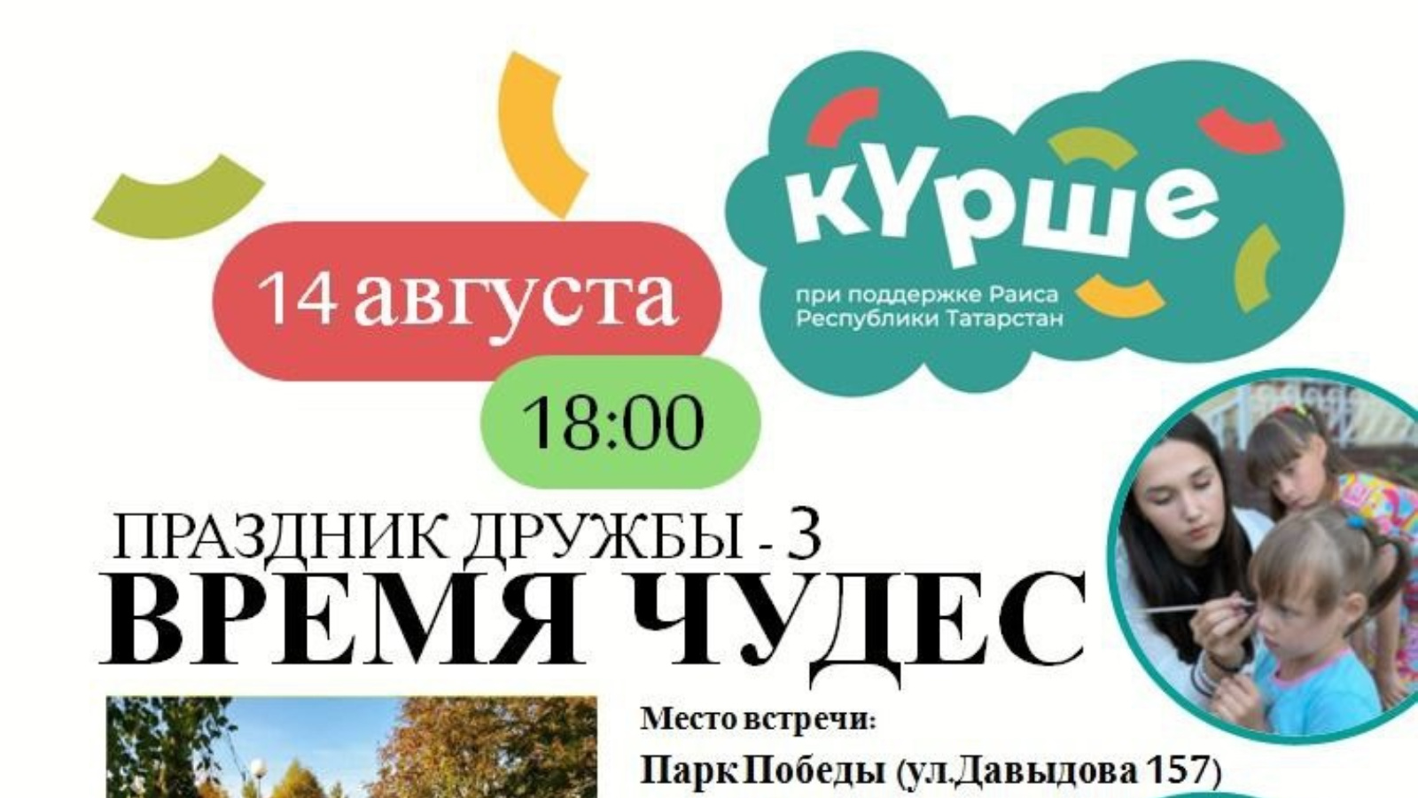 14 август көнне 18:00 сәгатьтә Җиңү паркында (Давыдов ур., 157) зур дуслык бәйрәме узачак!