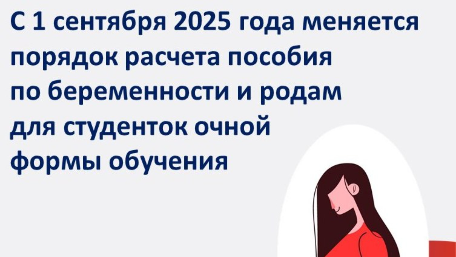2025 елның 1 сентябреннән көндезге уку формасында укучы студент кызлар өчен йөклелек һәм бала табу буенча пособие исәпләү тәртибе үзгәрәчәк, хәзер аны Россия Социаль фонды билгеләячәк. Моңа кадәр пособие күләме стипендиягә бәйле иде, хәзер ул хезмәткә сәләтле халыкның региональ яшәү минимумының 100 процентын тәшкил итәчәк.