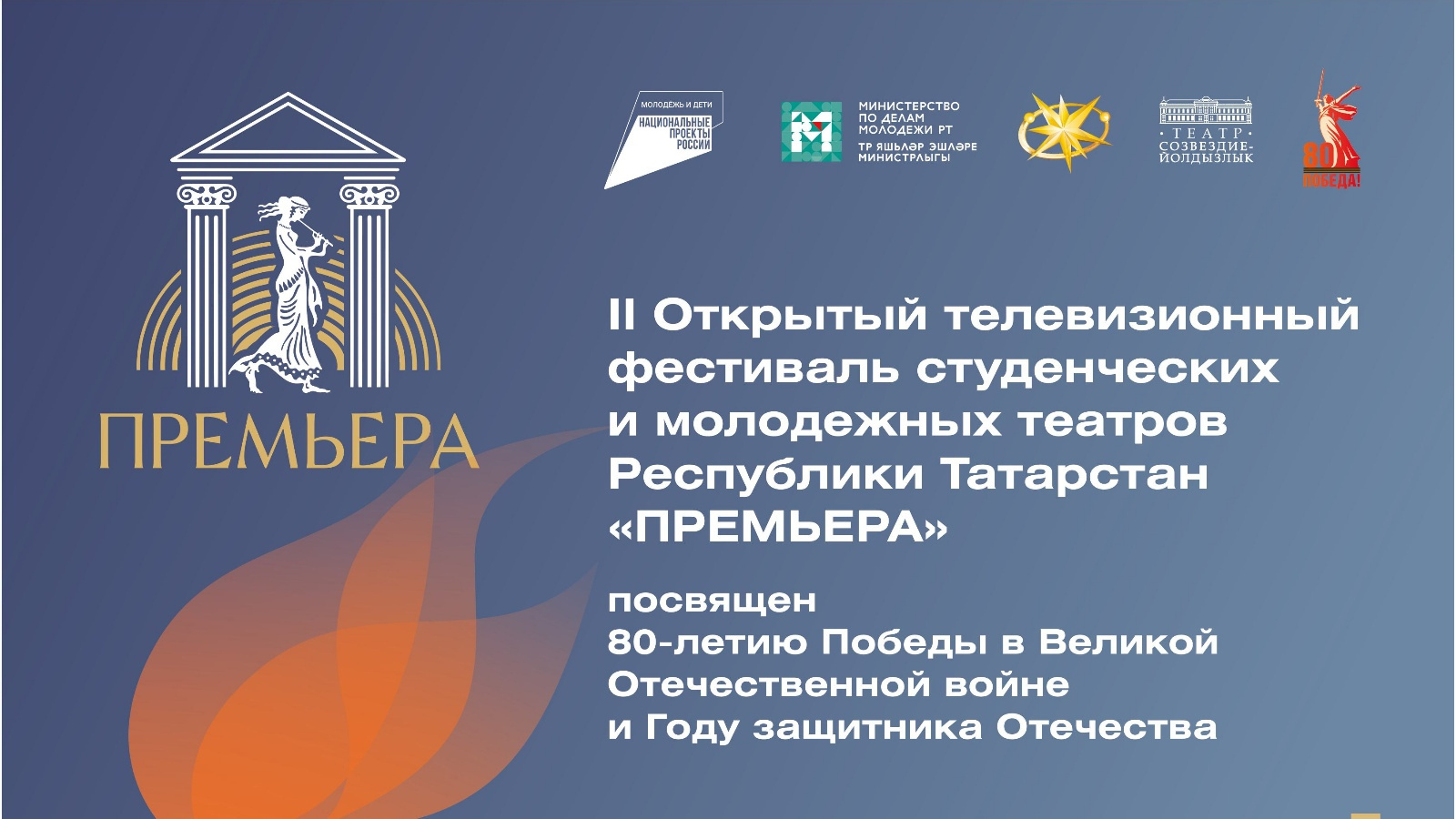 Быел Бөек Ватан сугышында Җиңүнең 80 еллыгына һәм Ватанны саклаучылар елына багышланган «ПРЕМЬЕРА» студентлар һәм яшьләр театрларының II ачык телевизион фестиваленең заявка кампаниясе дәвам итә. Спектакльләрнең материалларын-видеоверсияләрен электрон почтага җибәрергә кирәк festival-premiera@yandex.ru фестивальнең торышы белән түбәндәге сылтама буенча танышырга мөмкин: minmol.tatarstan.ru/polozheniy....